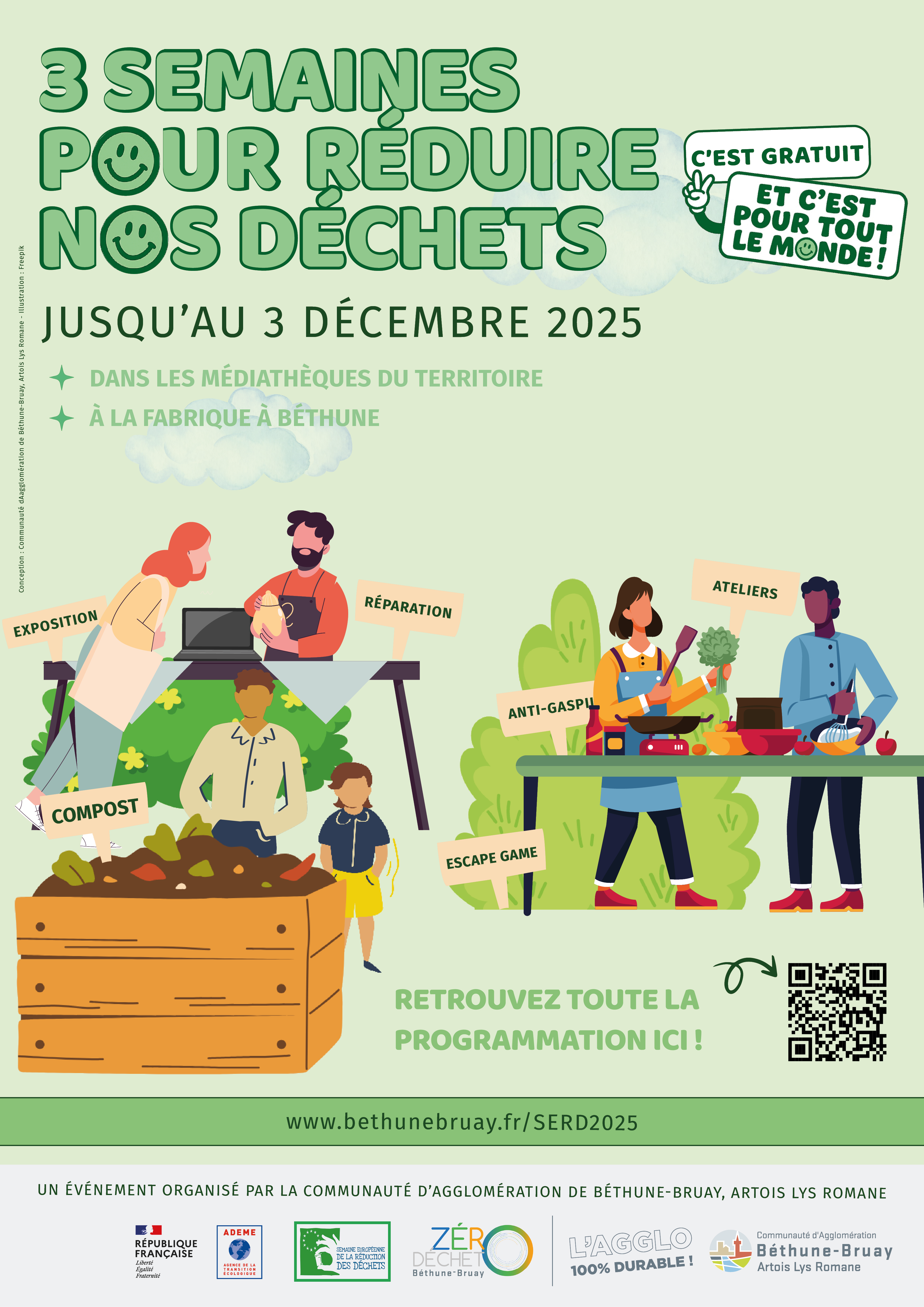 La Communauté d’agglomération de Béthune‑Bruay, Artois Lys Romane s’engage toute l’année pour vous aider à réduire vos déchets :