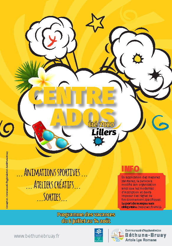 En application des mesures sanitaires, le service a modifié son organisation ainsi que les modalités d’inscription et devra imposer des règles de fonctionnement spécifiques. L’accueil se fera uniquement à la semaine et se déroulera sur 2 sites à Lillers (il sera confirmé lors de l’inscription) :