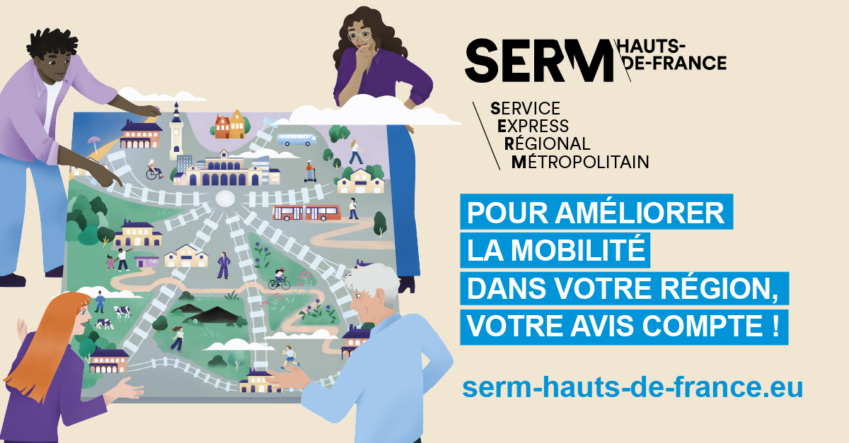 Pour que le SERM Hauts-de-France soit une offre de mobilité adaptée à vos besoins de déplacements, votre avis est essentiel.