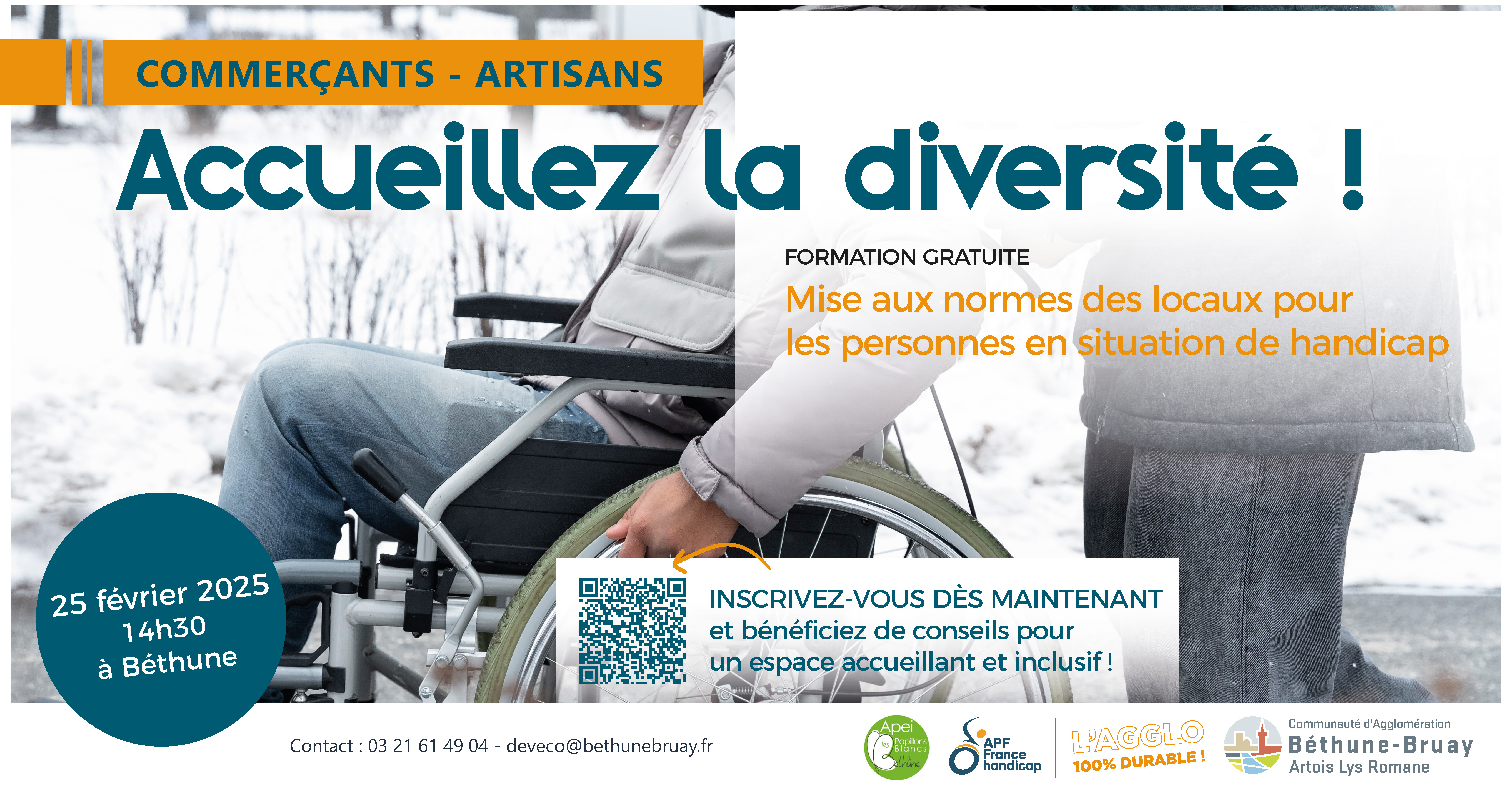 L’Agglo, en collaboration avec APF France Handicap et l'APEI Les papillons blancs de Béthune, organise des ateliers GRATUITS sur le handicap et l'accessibilité, spécialement conçus pour vous !