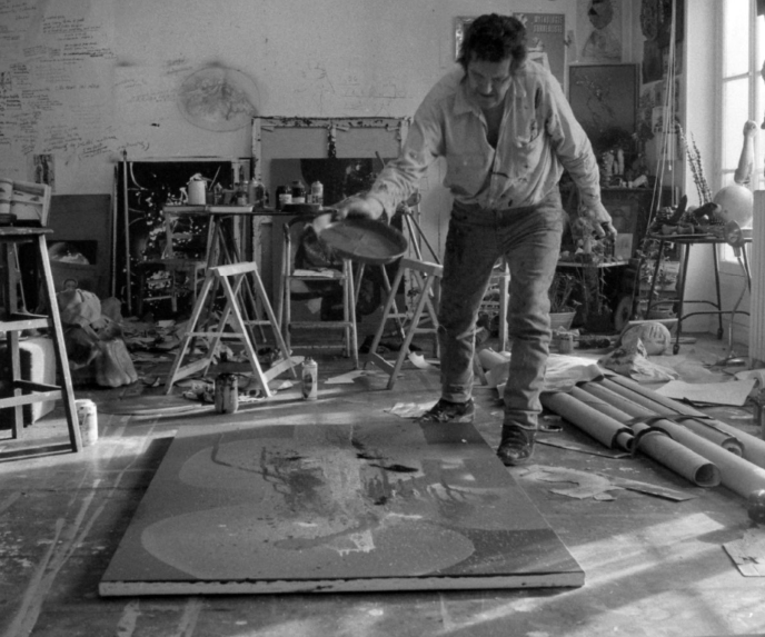 celui-ci à un iceberg dont les ⅘ sont immergés, donc invisibles. Nourri de voyages, d’études, de rencontres, passionné par la Préhistoire, il invente ou développe des techniques novatrices au service de ses messages engagés : le froissage, le graff, les coulures.