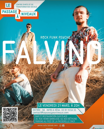 Falvino est un Power Trio Rock originaire de Lille (FR). Quand on les voit performer sur scène, le premier mot qui nous vient à l’esprit est « plaisir », tant l’alchimie entre les trois musiciens et leur personnalité ne laisse aucun public insensible. Plus que du Rock, ils jouent du Sunset Rock : un savant mélange de rock, de blues, de funk, de soul, dont le dénominateur commun est le groove.