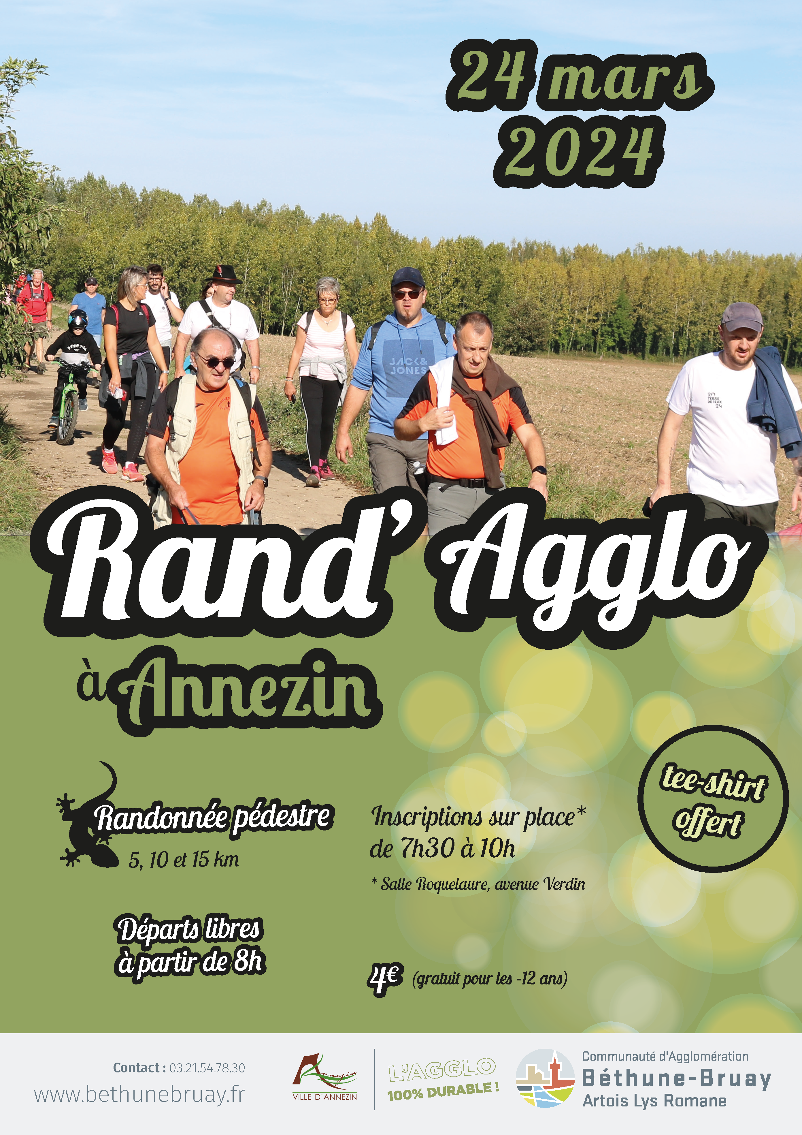 La Communauté d’Agglomération de Béthune-Bruay, Artois Lys Romane propose, dans le cadre sa compétence sport, la première Rand'Agglo de l'année ! Elle se tiendra à Annezin au départ de la salle Roquelaure - Avenue de Verdun.
