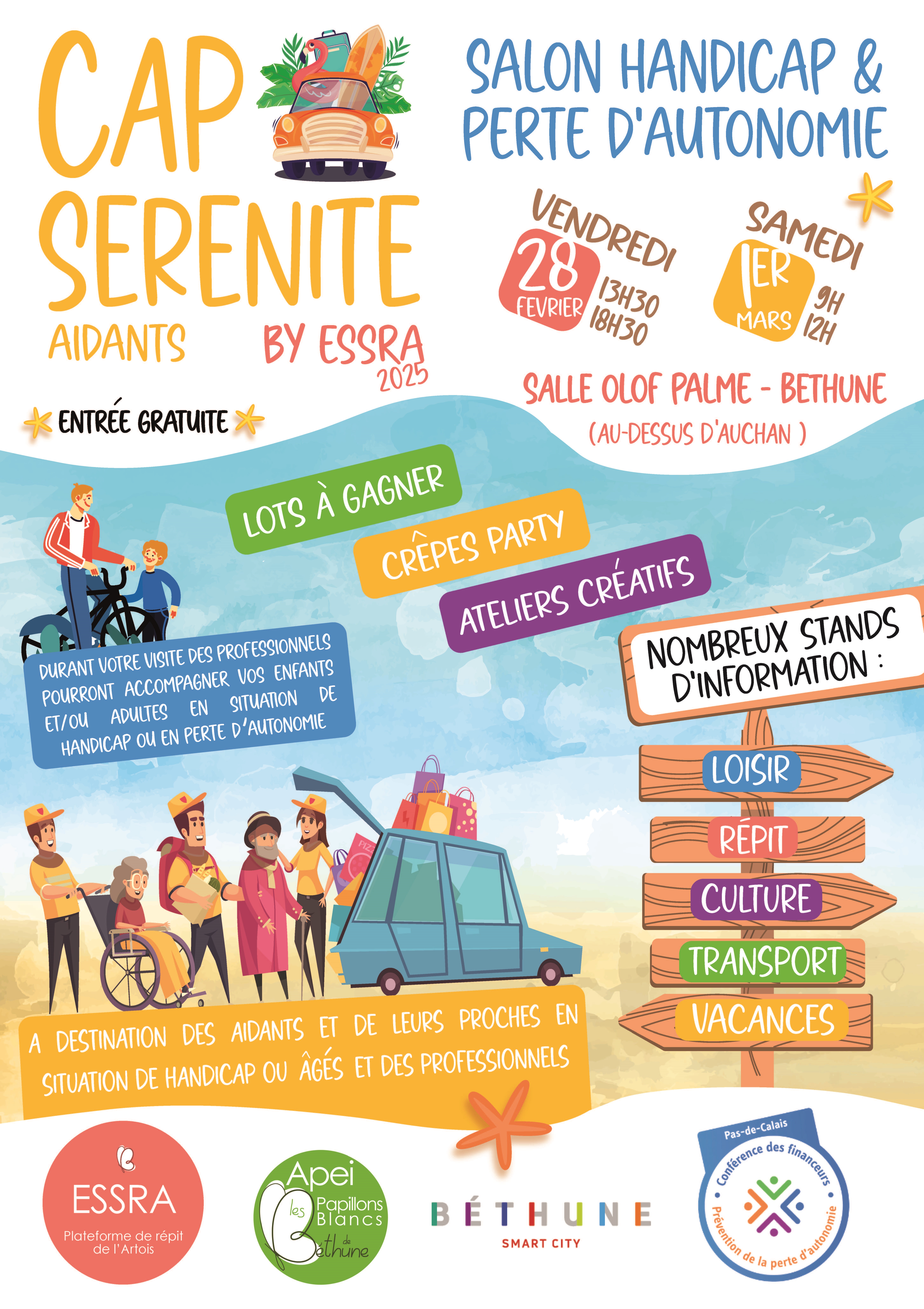 Vous accompagnez un proche (enfant ou adulte) en situation de handicap ou âgé, en perte d'autonomie ? Vous êtes vous même en situation de handicap ou en perte d'autonomie ? Vous êtes un professionnel ? Vous êtes une personne simplement curieuse de découvrir la thématique ? Venez visiter ce salon le Vendredi 28 février et Samedi 1er mars, à la salle OLOF PALME au dessus du magasin Auchan BETHUNE.
