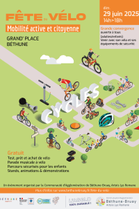 La Fête du Vélo, elle, est maintenue le dimanche 29 juin de 14h à 18h sur la Grand’Place de Béthune et ses environs (voir ci-dessous).