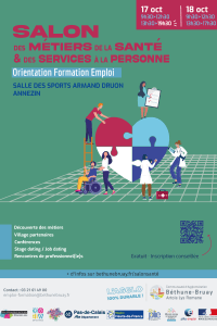Vous vous interrogez sur votre orientation ou celle de votre enfant ? Vous souhaitez en savoir plus sur le financement ou le contenu d’une formation ? Venez découvrir les métiers de la santé et des services à la personne (auxiliaire de vie, infirmier, ambulancier, manipulateur radio, médecin, puericulteur, technicien de laboratoire…) et participez à des temps d’échanges avec des professionnels de santé, des organismes de formation, et les partenaires emploi-formation.