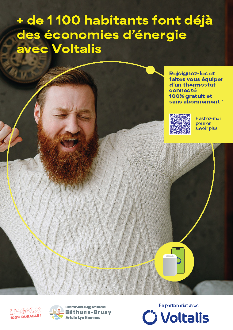 Dans le cadre de son projet de territoire visant une agglomération 100% durable d'ici 2032, la Communauté d'agglomération Béthune-Bruay, Artois Lys Romane s'associe à Voltalis pour aider ses habitants et professionnels chauffés à l’électrique à réduire leur consommation énergétique. Ce partenariat permet à 25 000 logements et locaux professionnels du territoire de bénéficier gratuitement d'un boîtier connecté pour piloter leur consommation électrique, avec des économies pouvant atteindre jusqu'à 15 % par an.
