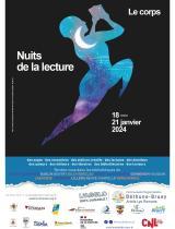 Les prochaines Nuits de la lecture, organisées pour la troisième année consécutive par le Centre National du Livre sur proposition du ministère de la Culture, se tiendront du 18 au 21 janvier 2024 au cours de quatre journées avec un temps fort le samedi 20 janvier. Elles auront pour thème le corps.