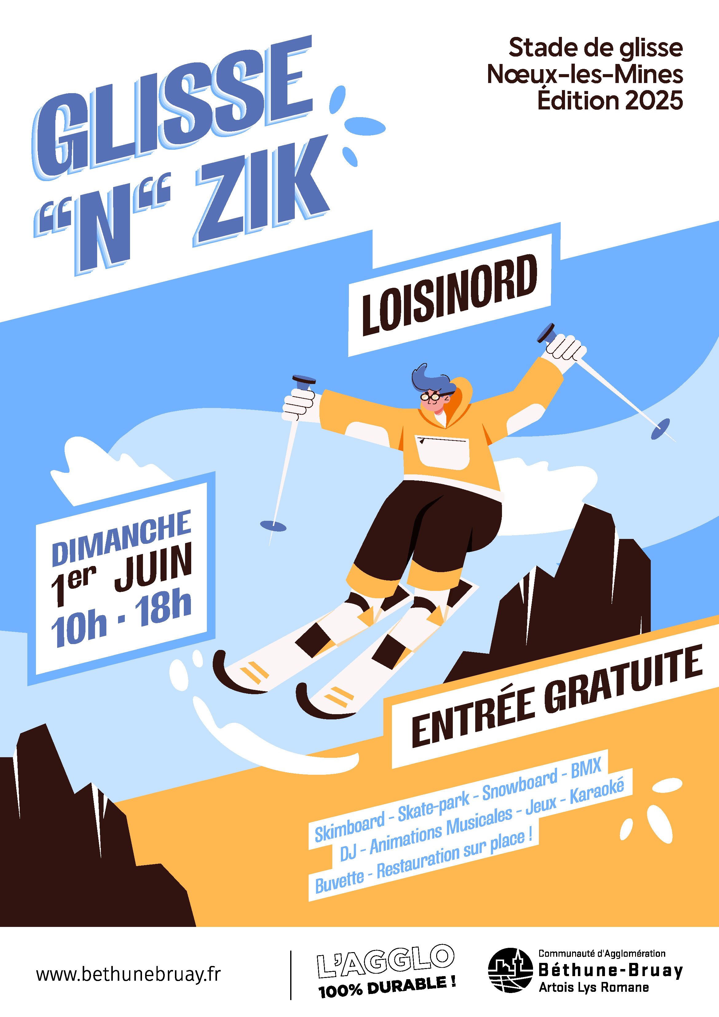 Rendez-vous le dimanche 1er juin de 10h à 18 pour le retour de Glisse'n'zik au stade de glisse de Loisinord !